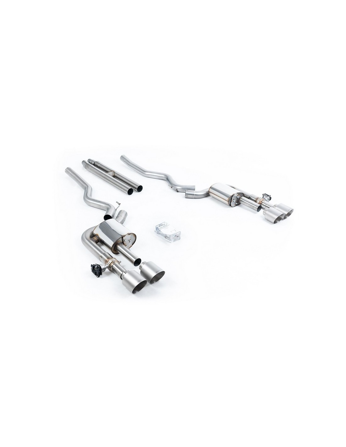 Cat-back con valvole attive e tubazione ad H (più rumoroso) e finalini a quattro uscite titanio spazzolato