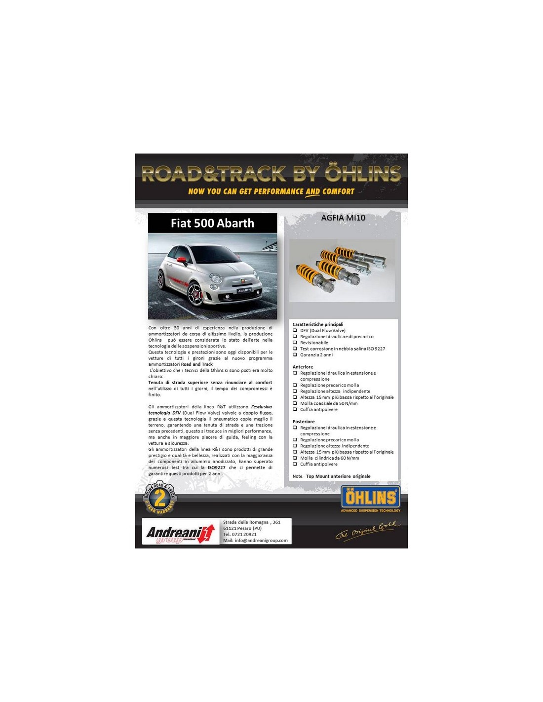 Assetto coilover regolabile Abarth 500/595 - Ohlins Road&Track AGFIA MI10