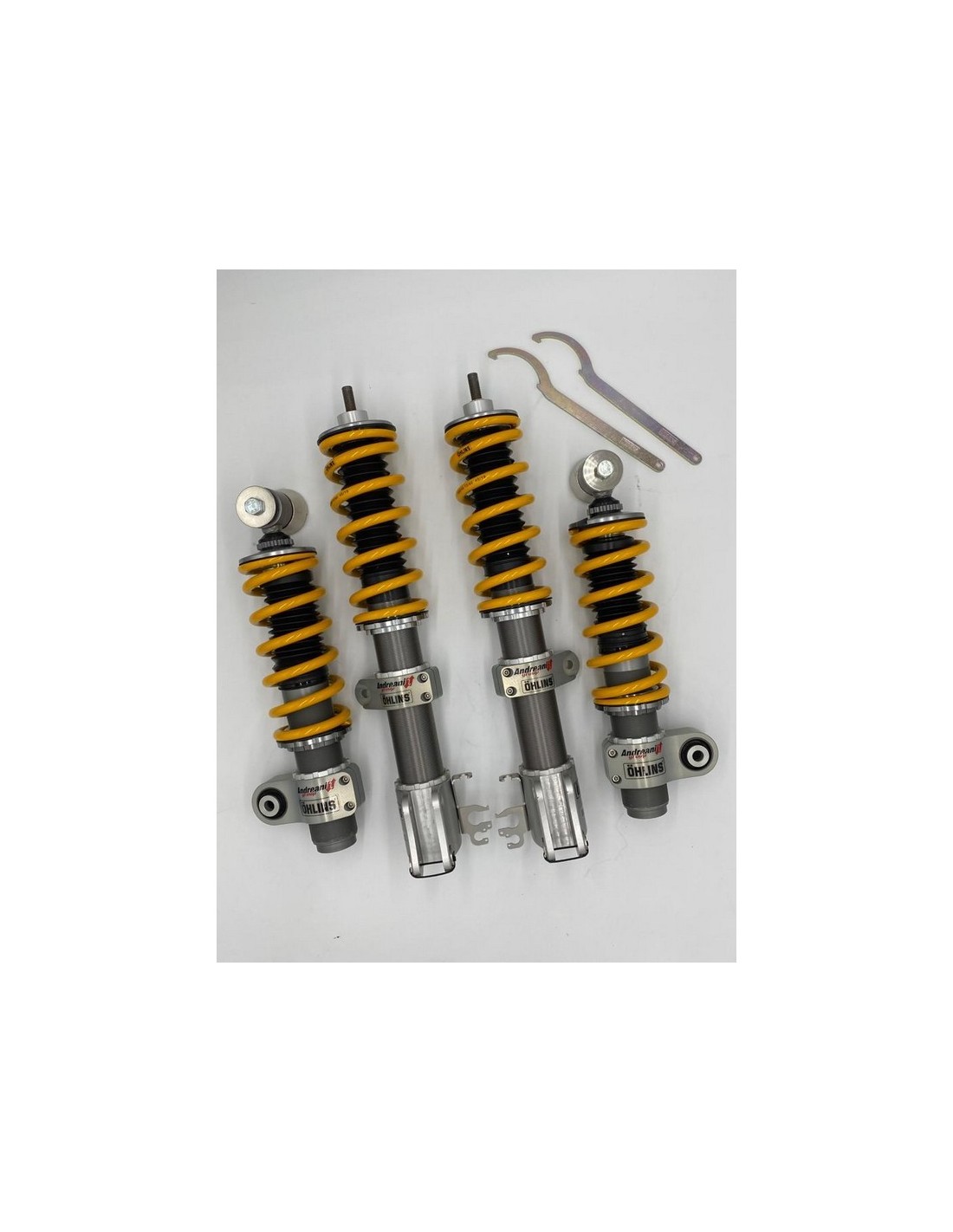 Kit completo sospensioni regolabili Ohlins Road & Track realizzato per migliorare la guida quotidiana su strada offrendo l'opportunità di affrontare anche i circuiti su pista.