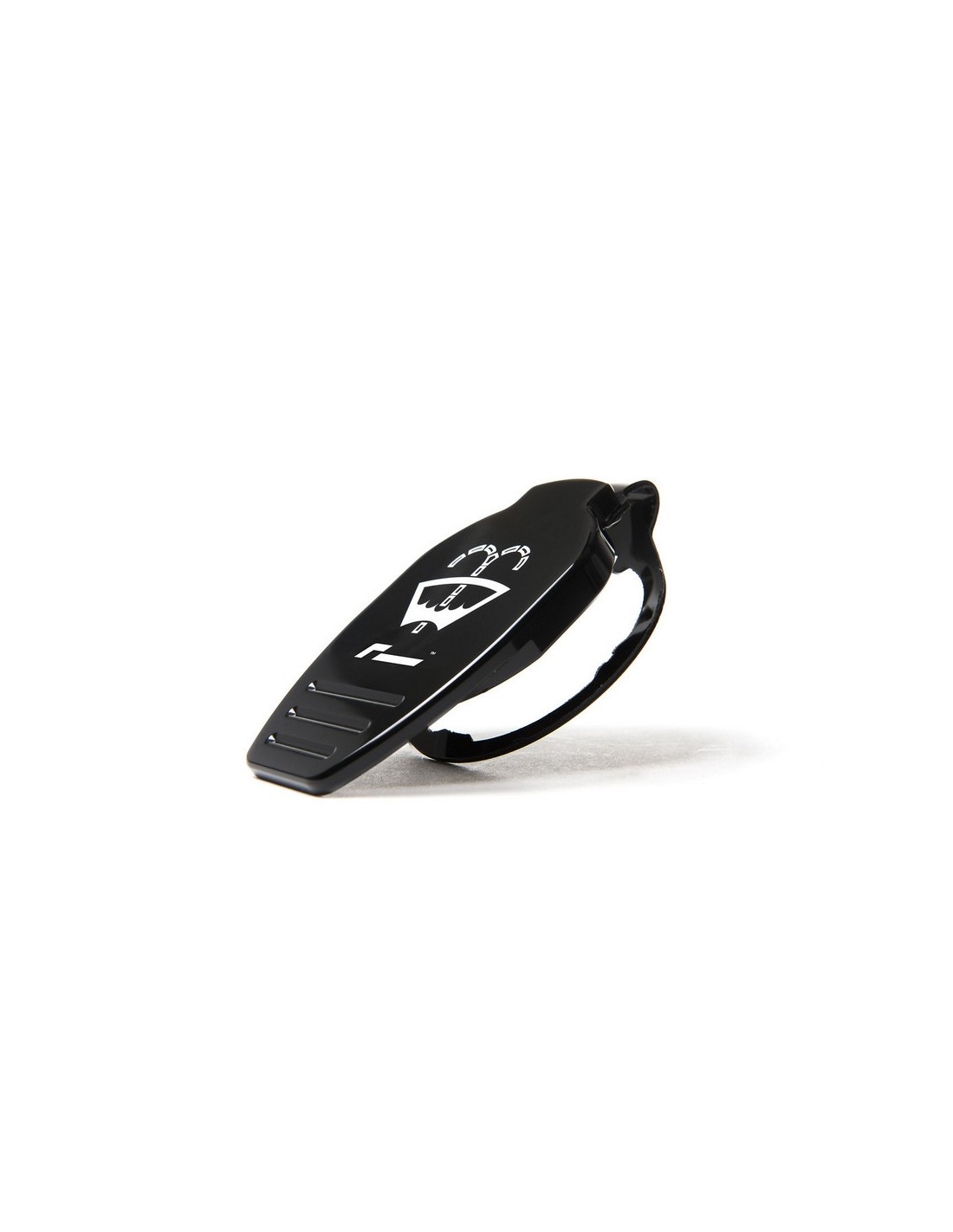 High-gloss midnight black finish with laser-etched logos.