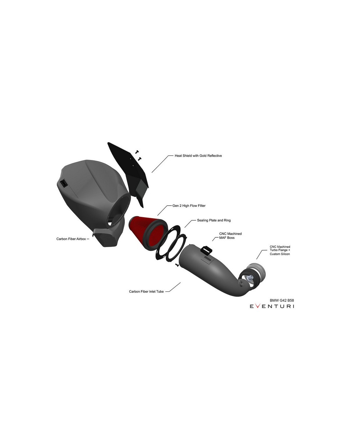 Aspirazione diretta in carbonio BMW Serie X G01 X3 M40i, G02 X3 M40i (motore B58D) - Eventuri EVE-GXXB58-CF-INT