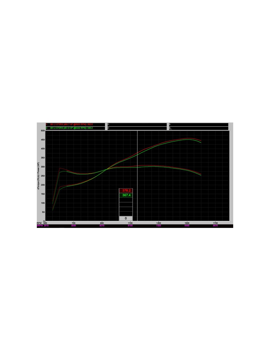 La nostra aspirazione è stata testata in modo indipendente da ES Motors che costruisce Porsche ad alta potenza nel Regno Unito. I test sono stati eseguiti lo stesso giorno uno dopo l'altro utilizzando un banco dinamometrico. Come si può vedere, c'è un guadagno misurabile in tutta la gamma di giri al minuto, non solo al picco, che è più importante in quanto l'area aumentata sotto il grafico dimostra che l'assunzione sta avendo un impatto oltre le cifre principali. Questo miglioramento anche su un'auto di serie è evidente su strada con una migliore risposta dell'acceleratore e un'accelerazione più rapida. Il primo grafico è il riepilogo dei risultati e il secondo è uno screenshot del test al banco per mostrare il guadagno nella fascia media.