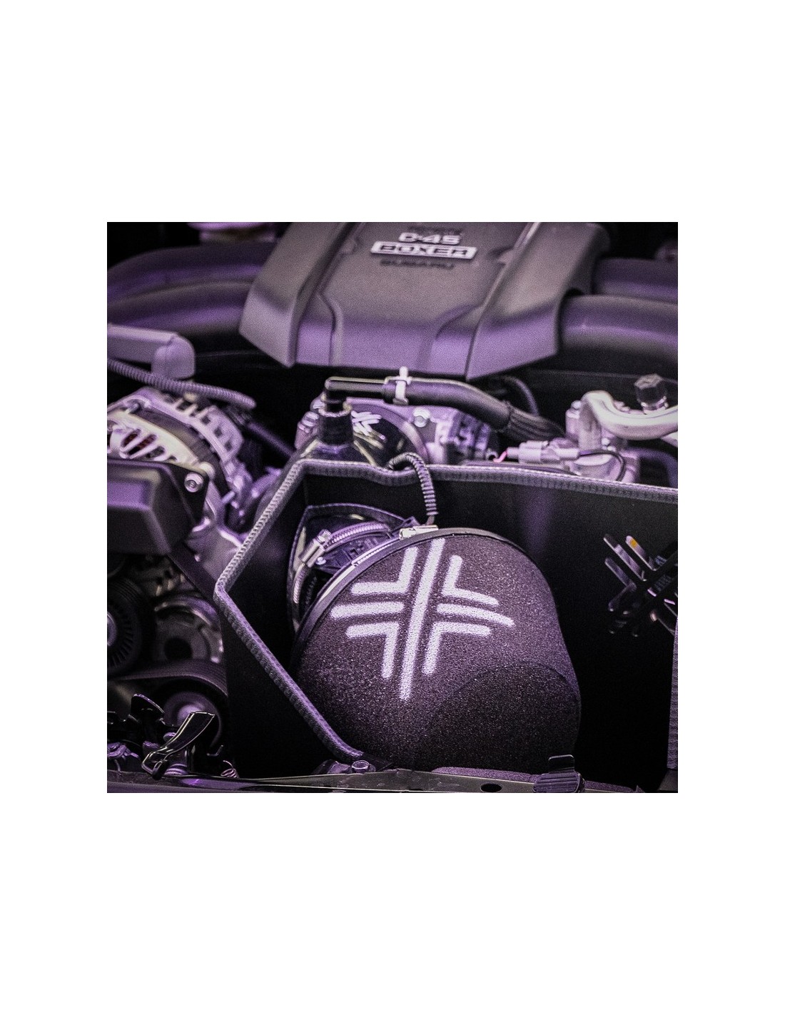 Il mezzo filtrante/superficie doveva essere migliorato tramite un filtro dell'aria cilindrico personalizzato a base di schiuma. L'airbox OE doveva essere completamente sostituito con uno scudo termico in alluminio, utilizzando il condotto dell'aria fresca OE e i punti di montaggio/occhielli OE. Il tubo di aspirazione OE doveva essere riprodotto come tubo di aspirazione in silicone, per mantenere la flessibilità adeguata e conservare le proprietà di resistenza al calore del tubo OE. Tutti i componenti Pipercross dovevano essere massimizzati nello spazio, senza compromettere gli standard di spazio libero o riposizionare il sensore MAF (rispetto al corpo farfallato), tutti necessari per la funzionalità/durata a lungo termine del kit Pipercross e del motore boxer da 2,4 L.