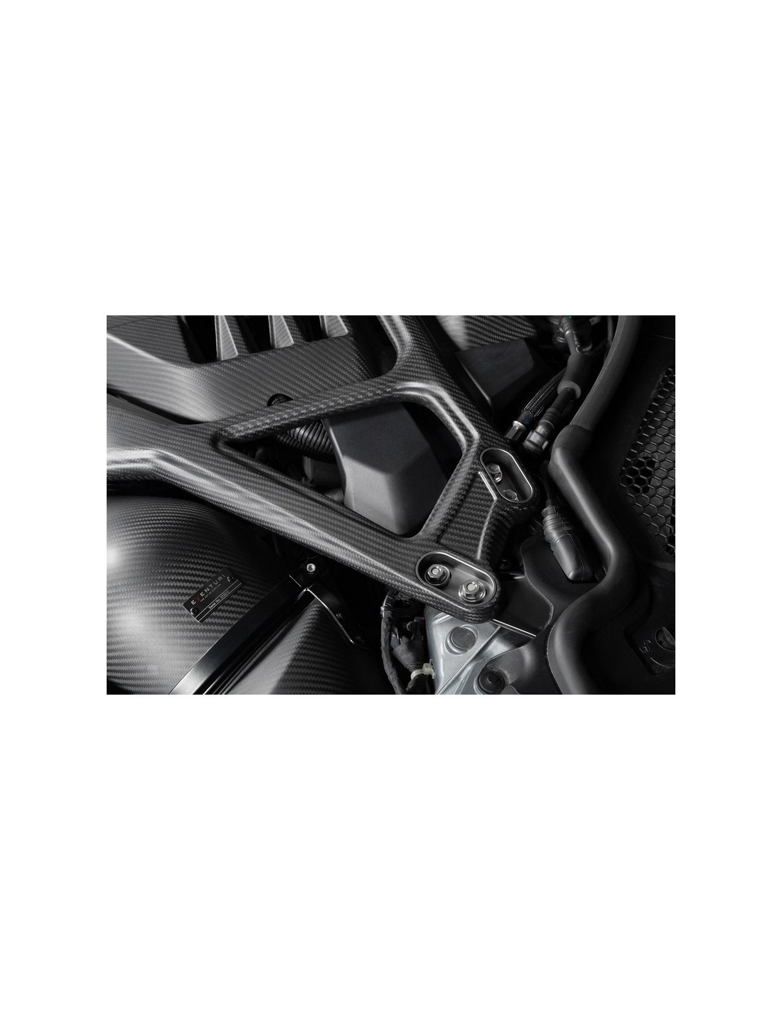 Più di una semplice parte funzionale, il rinforzo montante in carbonio Eventuri G8x esalta l'estetica del vano motore, incorniciando magnificamente l'aspirazione e il cofano motore.