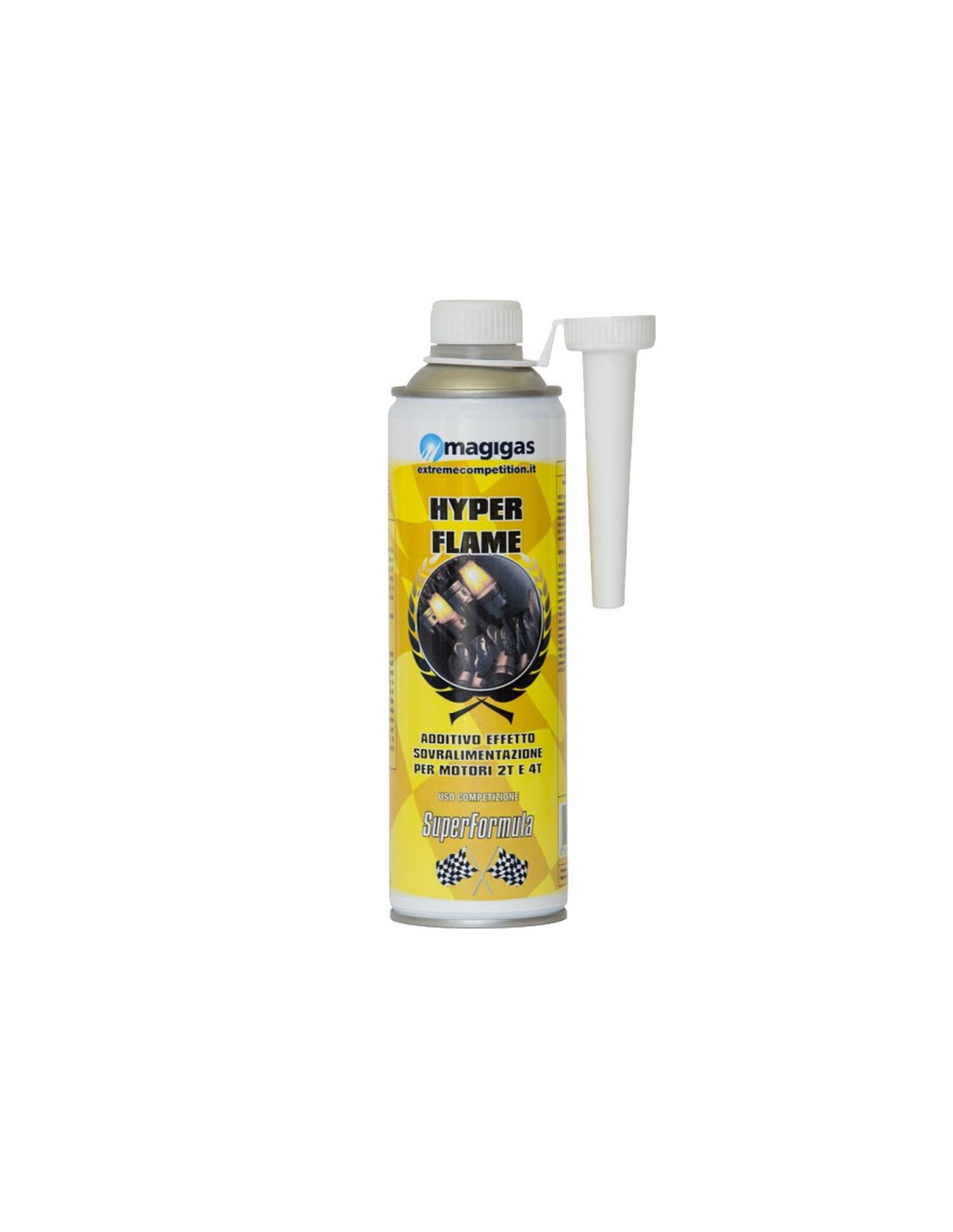 Hyper Flame è un additivo per benzine derivato direttamente dallesperienza nel mondo delle corse, indicato per uso competizioni ed è in grado, miscelato con la benzina verde, di fornire prestazioni eccezionali.