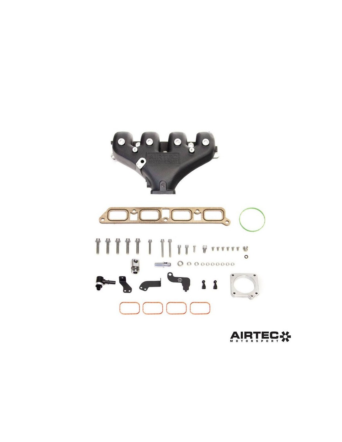 Realizzato in alluminio pressofuso di alta qualità per una maggiore resistenza rispetto al gruppo in plastica originale, il collettore è rifinito in nero verniciato a polvere di alta qualità con un logo AIRTEC Motorsport in rilievo, per un look OEM+ pulito per migliorare l'aspetto del vano motore.