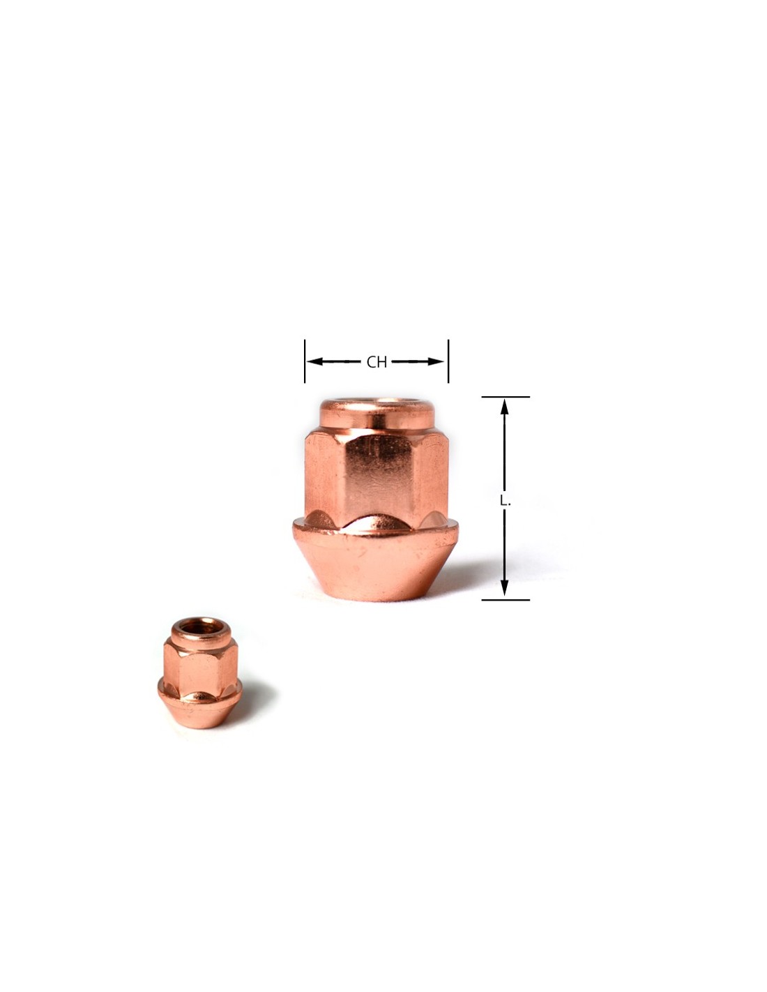 Dado conico aperto Ramato M12x1,25 chiave 19 L.29mm M12 1,25 12x1,25 dadi ramati conici aperti rame