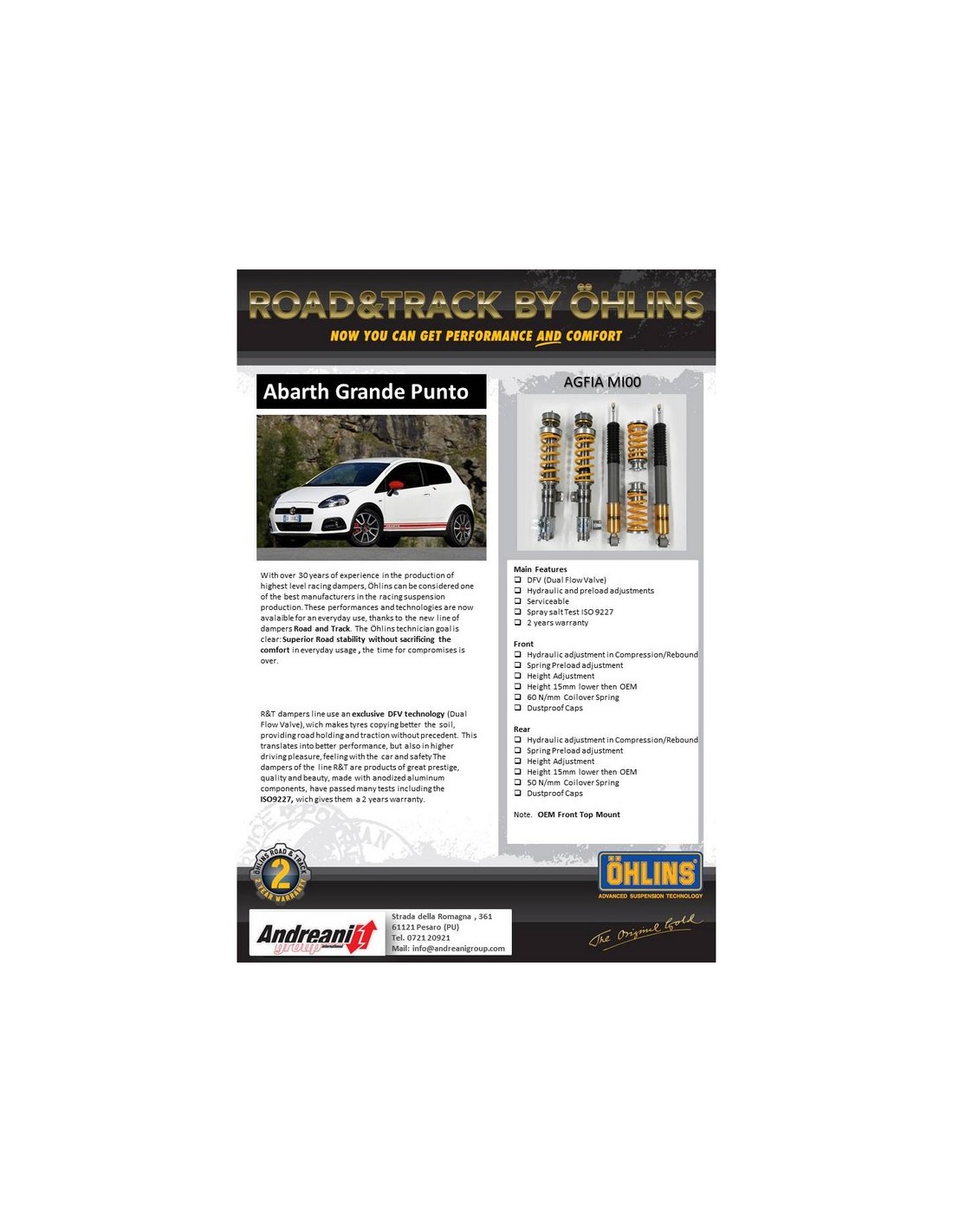 Assetto coilover regolabile Abarth Grande Punto / Evo - Ohlins Road&Track AGFIA MI00