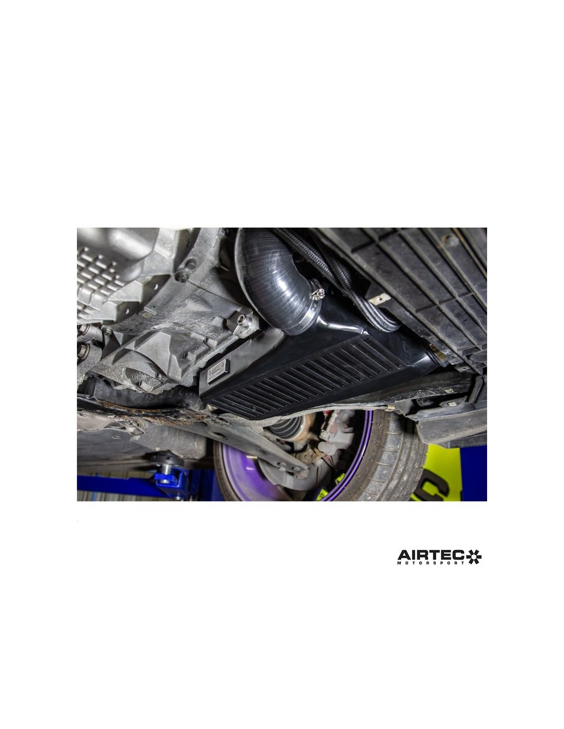 Progettata e sviluppata presso la sede centrale di AIRTEC nel Regno Unito, la nostra soluzione consisteva nello sviluppare un intercooler secondario che si monta sotto l'auto dietro il sottoscocca e riceve aria fresca da un condotto. Aggiungendo un secondo intercooler al posto della sezione delle tubazioni dopo il turbo, siamo stati in grado di ridurre significativamente la temperatura dell'aria prima che entrasse nell'intercooler primario a montaggio anteriore, consentendogli di funzionare in modo più efficiente offrendo allo stesso tempo un enorme aumento della capacità complessiva dell'intero sistema.