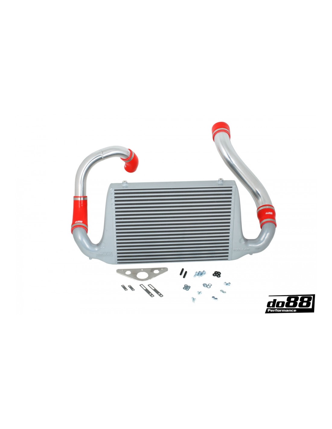 L'intercooler ad alte prestazioni do88 è realizzato interamente in alluminio. Grazie ai serbatoi terminali fusi progettati tramite CAD e ottimizzati per il flusso, insieme a un design del nucleo ottimizzato, si ottiene la migliore efficienza di raffreddamento possibile combinata con la minima caduta di pressione possibile!