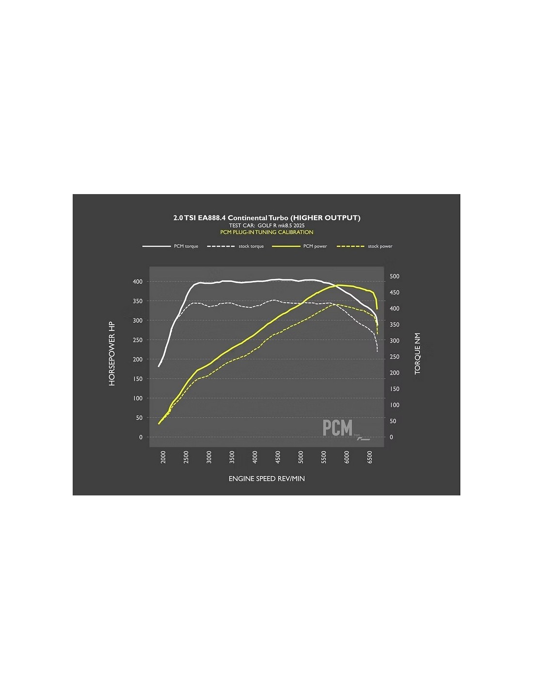 E come mostrano chiaramente i grafici al banco, il PCM è una trasformazione rispetto all'aumento di potenza del nuovo 2.0 TSI EA888.4: