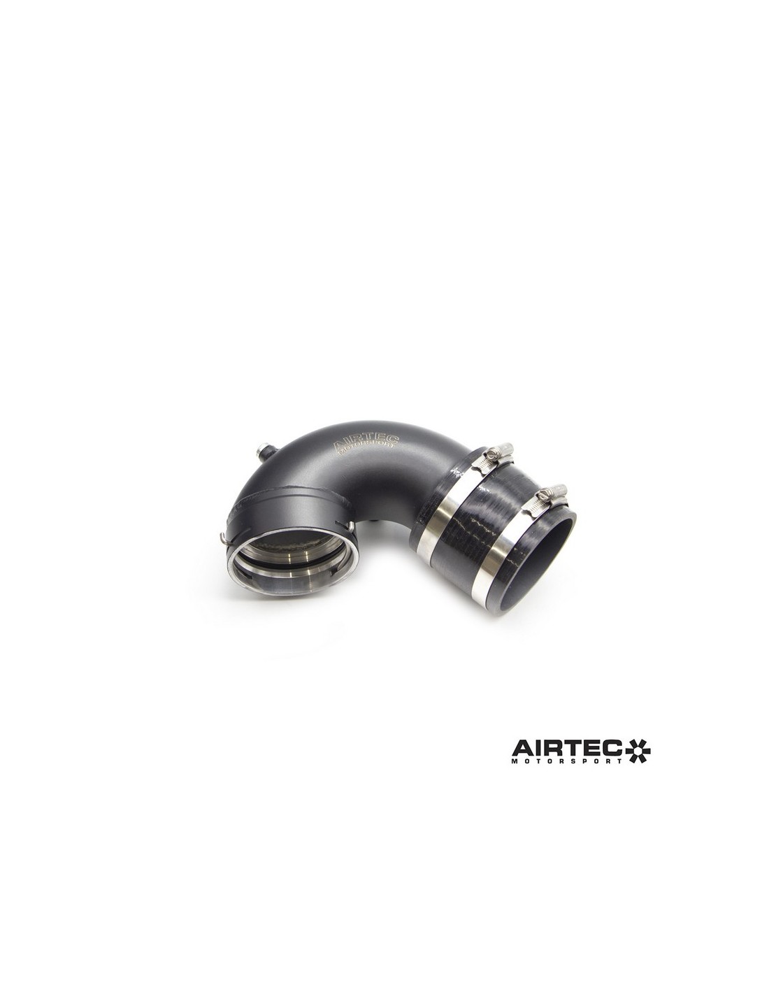Rifinito in nero verniciato a polvere con un logo AIRTEC Motorsport inciso al laser, c'è anche una porta per l'iniezione di metanolo e il kit di montaggio completo include un connettore in silicone Pro Hoses, o-ring, clip a molla e clip jubilee, oltre a istruzioni dettagliate per l'installazione.