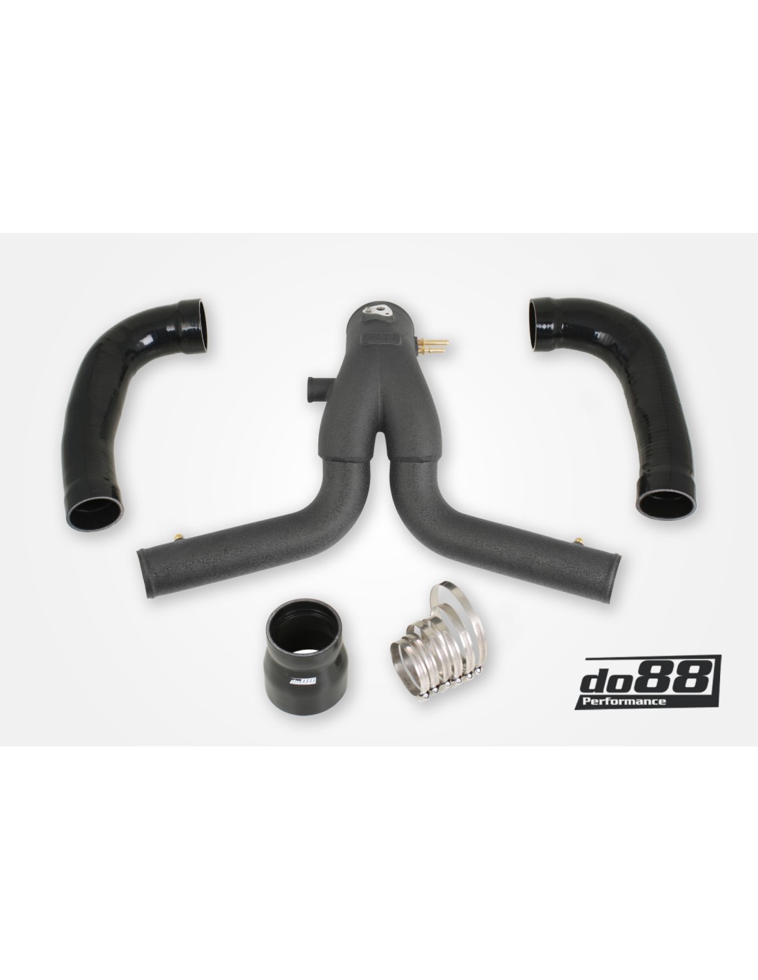 Il kit include anche 2 tubi in silicone personalizzati di alta qualità, disponibili in due diverse versioni. La versione necessaria dipende se si installa il tubo a Y insieme agli intercooler OEM o agli intercooler ad alte prestazioni Do88. È possibile scegliere i tubi nell'elenco a discesa sopra.