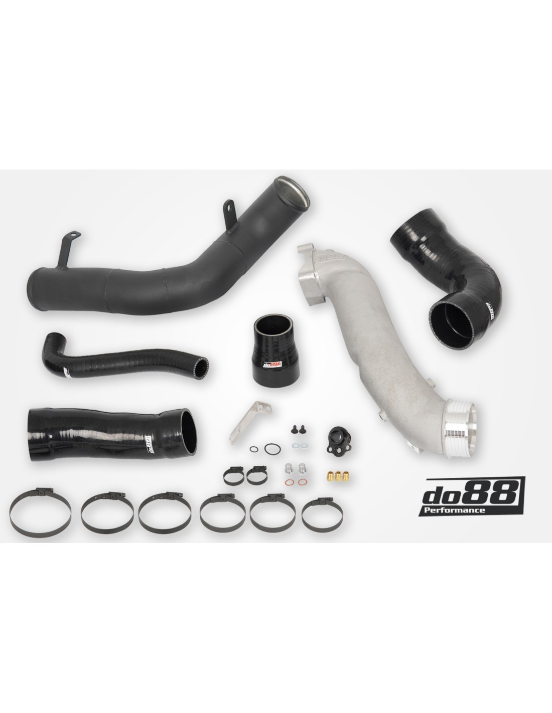 Questo kit include tutti i tubi e i flessibili da e per l'intercooler. Il kit è progettato per integrare e migliorare ulteriormente le prestazioni dell'intercooler ad alte prestazioni do88, dotato di un nucleo Garrett progettato per potenze fino a 1000 CV. I tubi di sovralimentazione OEM non sono ottimali dal punto di vista del flusso d'aria, con diverse curve strette e che riducono il flusso. Il kit di tubi do88 è significativamente più grande con transizioni fluide, offrendo un aumento del flusso d'aria del 31%!