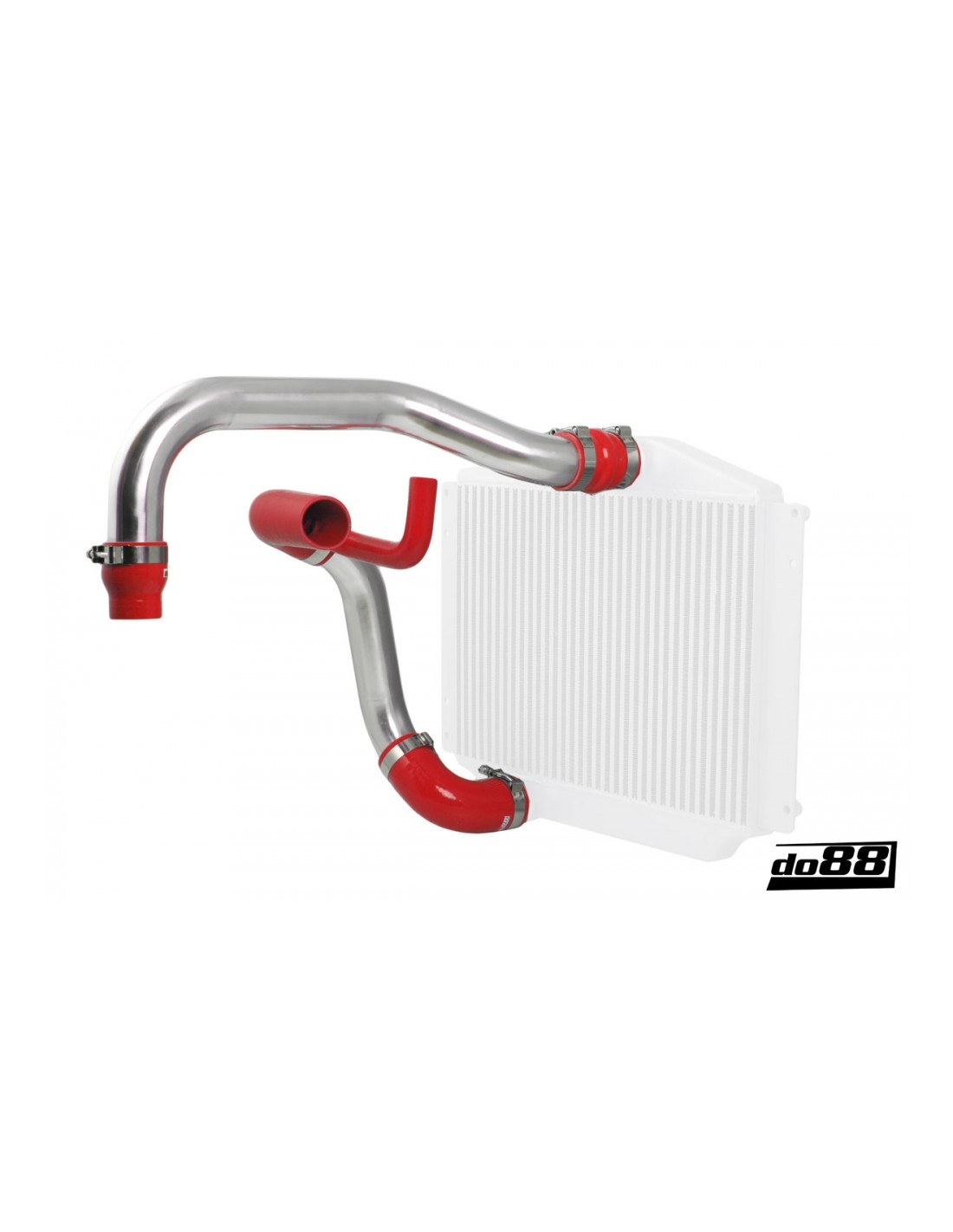 I tubi di pressione sono realizzati in tubi di alluminio senza saldatura da 2,5" piegati a mandrino. Questi tubi invertono il flusso attraverso l'intercooler, l'aria che va al corpo farfallato viene prelevata dalla parte inferiore dell'intercooler. Questo riduce la lunghezza totale dei tubi do88 550 mm più corti dei tubi OEM.