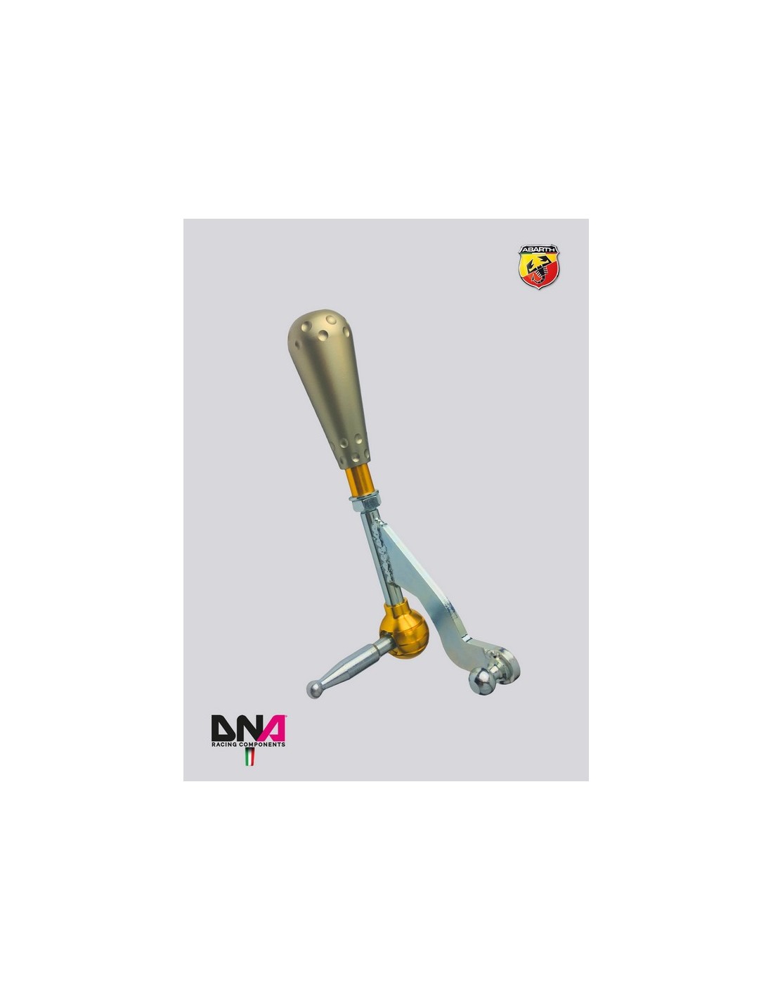 Le auto di serie sono caratterizzate da una lunga escursione della leva del cambio, questo per motivi di comfort e facilità di guida. Nella guida sportiva, invece, si richiede una leva del cambio dagli innesti corti e precisi. Il kit da noi sviluppato per la 500 Abarth riduce la corsa longitudinale e trasversale della leva del cambio di circa il 30%. Il kit non richiede alcuna modifica e comprende tutti i componenti necessari per la modifica. Il sistema prevede inoltre la possibilità di estendere o ridurre la lunghezza danda maggiori possibilità di opzioni al guidatore. Il kit è composto da: snodo sferico tipo ‘uniball’ alluminio anodizzato oro a gioco zero esente da manutenzione, leva cambio in acciaio zincato esente da ruggine con saldatura ‘heavy duty’ per una maggiore resistenza e guida laterale in materiale plastico tipo ertacetal a basso attrito. Nel kit è incluso un pomello 695 style in alluminio anodizzato titanio. Il comprende tutti i componenti necessari per l'installazione. Non è necessaria alcuna modifica del veicolo.