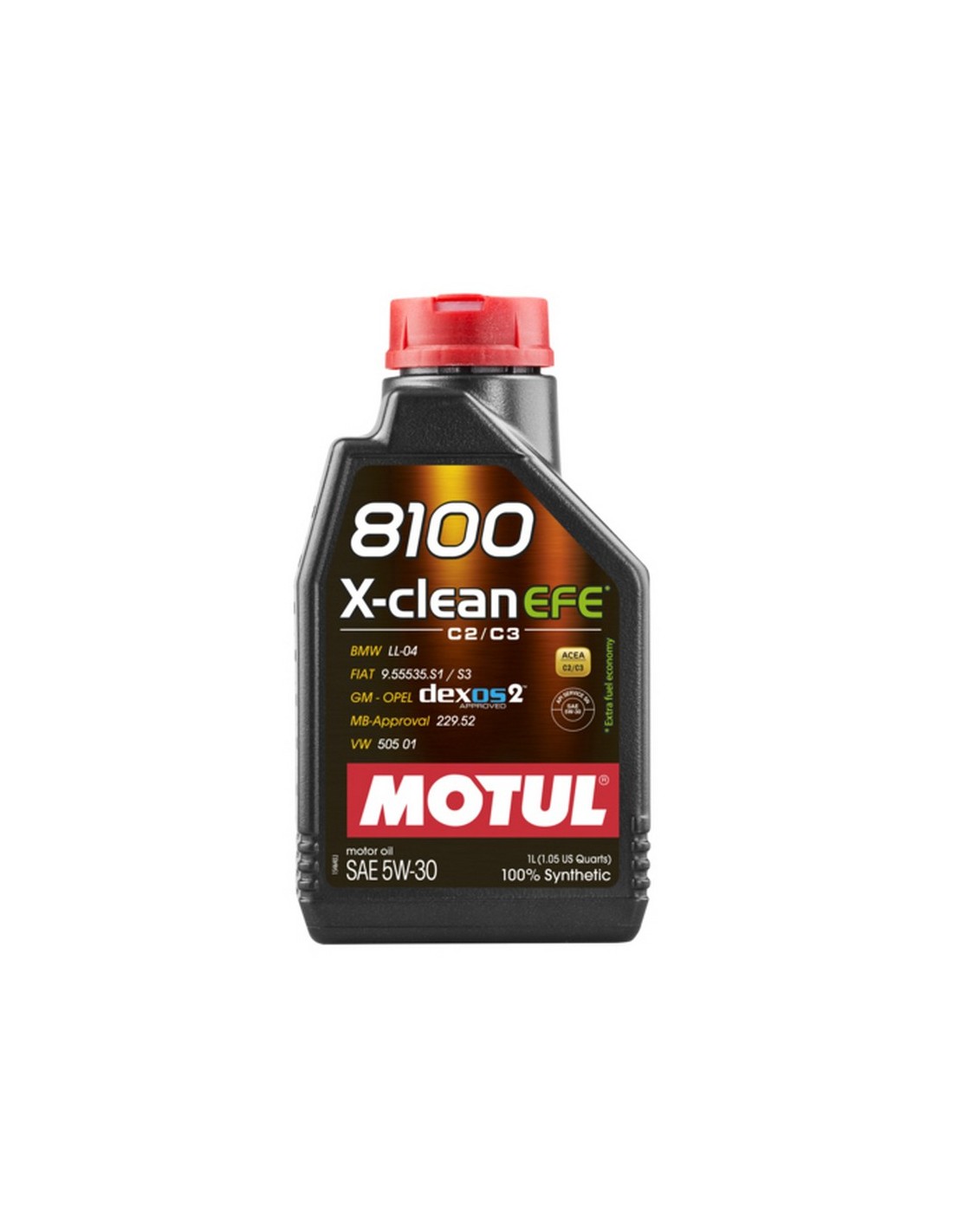 MOTUL 8100 X-clean EFE 5W-30 è realizzato con una base sintetica unita a specifici modificatori di attrito e ridotto livello di ceneri in modo da ottenere un’elevata resistenza del film lubrificante, una riduzione degli attriti interni al motore e compatibilità con i sistemi di post trattamento dei gas di scarico. Il prodotto permette elevata protezione dall'usura e resistenza alle alte temperature per un minor consumo d’olio. I lubrificanti di tipo ACEA C2 e C3 permettono di ottenereintervalli di sostituzione più estesi, gestiti direttamente dal computer di bordo del veicolo.