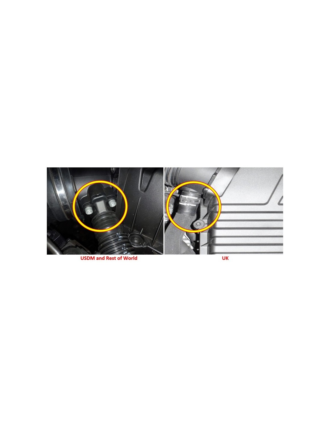 Quando si cerca di adattare il nostro kit di induzione in fibra di carbonio FMINDK47 a un veicolo del gruppo VAG dal 2019 in poi alimentato da un DNWA dal 2019 in poi, si potrebbe scoprire che il tubo della valvola deviatrice al gomito DV richiede un adattatore. I modelli precedenti utilizzano un giunto dritto per tubo in silicone, tuttavia questi modelli successivi utilizzano un giunto rettangolare. FMBH8 è progettato per adattarsi ai veicoli USDM e ROW che in genere utilizzano questo tipo di tubo della valvola deviatrice, mentre i veicoli con specifiche europee e britanniche tendono a utilizzare un tubo dritto in silicone. Per identificare quello di cui hai bisogno, utilizza l'immagine di riferimento qui sotto per identificare la variante in tuo possesso.