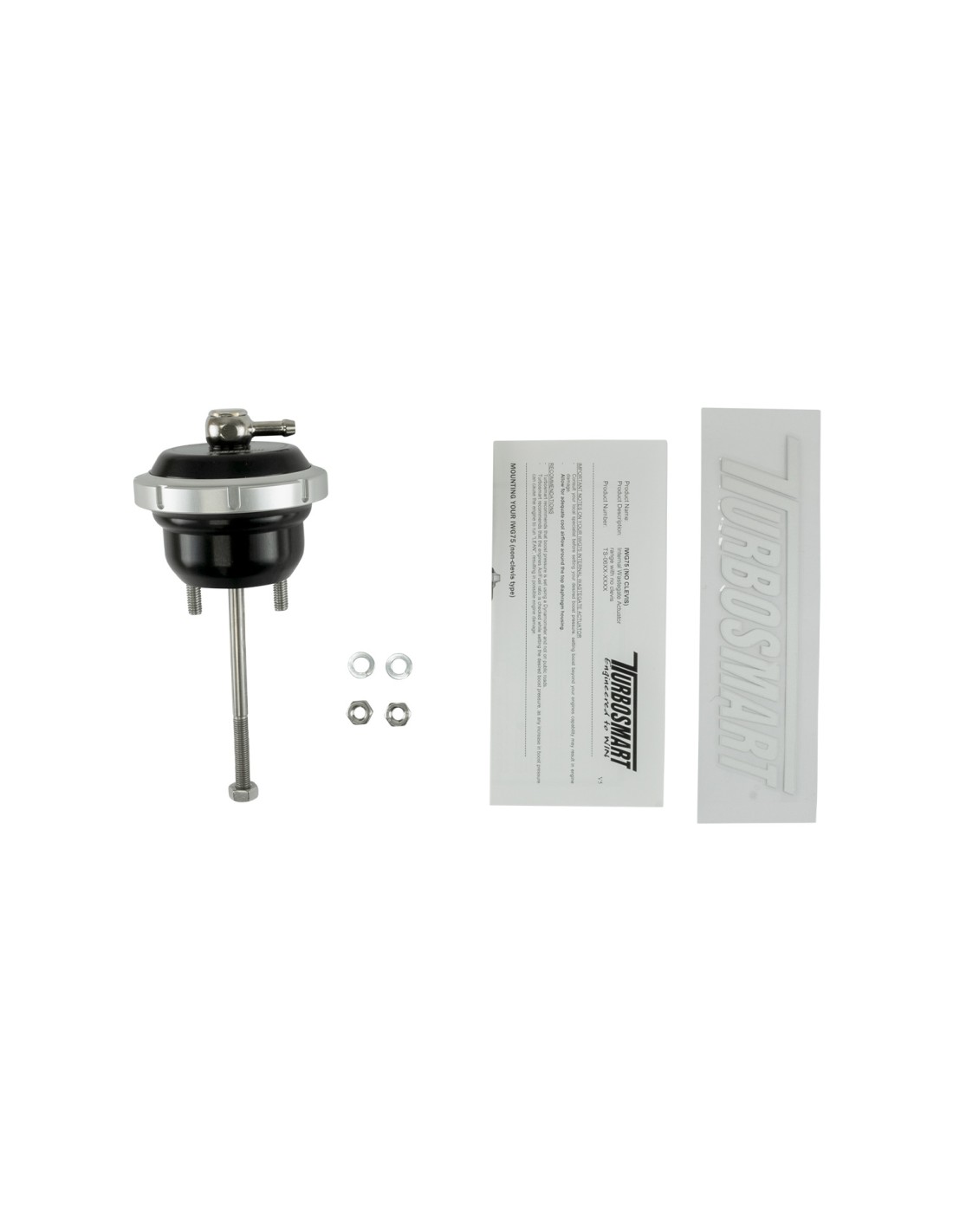 Gli attuatori Wastegate potenziati Turbosmart sono stati sviluppati per fornire la massima risposta di sovralimentazione possibile per il turbocompressore del telaio di fabbrica. La serie di attuatori potenziati Turbosmart IWG75 trae vantaggio da un "rapporto di lavoro" aumentato rispetto all'attrezzatura di fabbrica, con conseguente risposta di sovralimentazione migliorata in tutta la gamma di giri al minuto.