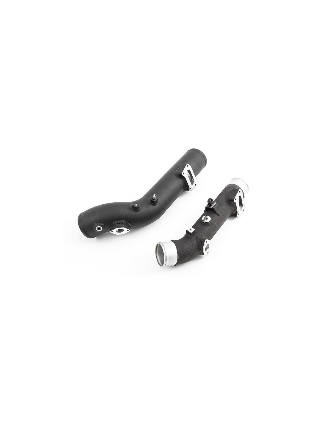Osservando il tubo OE, era chiaro che c'era spazio per miglioramenti, quindi dopo molti test, abbiamo optato per un tubo duro in lega piegata con mandrino di 70 mm di diametro e giunti in silicone. Vengono utilizzati bossoli per macchine CNC billet in lega, in modo che tutti gli accessori originali si adattino perfettamente. Rispetto al tubo OE, i miglioramenti sono evidenti, il diametro del foro di ingresso è stato ora aumentato da 51 mm a 70 mm di diametro esterno.