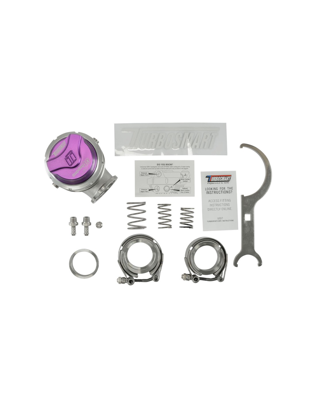 Un aggiornamento diretto per tutti i wastegate Turbosmart Gen4 e dotato del nostro esclusivo sistema di bloccaggio del collare, tappo e base dell'attuatore variabili per un facile instradamento opzionale a 360 gradi dei tubi di riferimento, morsetti a V a cinghia, predisposizione opzionale per raffreddamento a liquido, porte di riferimento NPT da 1/8" e sono forniti con la gamma completa di molle disponibili.